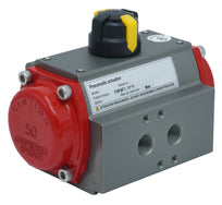 Met kwartslag pneumatische actuators kunt u kogel- of vlinderkleppen bedienen met perslucht in plaats van met een handmatige hendel. Er zijn verschillende ISO/DIN-aansluitpunten beschikbaar om een ventiel rechtstreeks te monteren. Ze kunnen dubbelwerkend zijn (persluchtbesturing open en dicht) of enkelwerkend met een veer open of veer dicht. Sluit een luchtslang aan op de aansluitpunten aan de zijkant of monteer een Namur magneetventiel rechtstreeks op de actuator. De persluchtdruk houdt rechtstreeks verband met het koppel van de actuator, zodat voor een actuator een breed koppelbereik mogelijk is. Pneumatische actuators zijn snel en betrouwbaar, zodat u een bestaand handmatig proces kunt automatiseren.