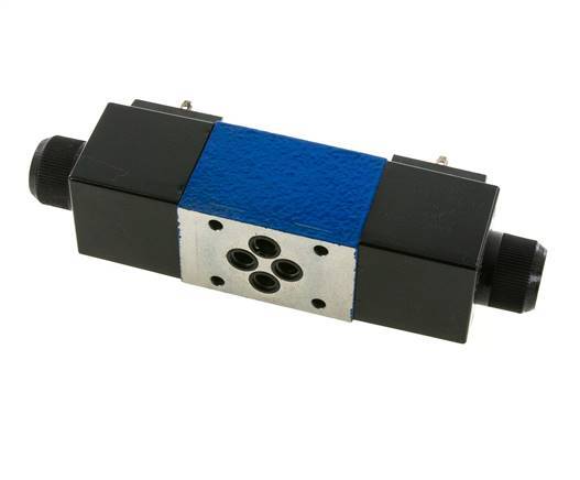 Bosch Rexroth direct bediende 4/3 weg hydraulische magneetklep met NG6 (D03) montage-interface (de montage-interface NG 6 is gestandaardiseerd volgens DIN 24340-A6, ISO 4401-03, CETOP R 35 H-03 en NFPA-D03) en een 230 V AC spoel. De klep heeft een gietijzer behuizing met NBR (nitrilrubber) afdichting. Geschikt voor systemen met een maximale druk van 350 bar en een temperatuurbereik van -15 tot 80 °C. De klep heeft een debiet van 60 l / min en een maximale viscositeit van 500 cSt. De NBR-afdichting (nitrilrubber) is geschikt voor minerale oliën. Handmatige bediening kan worden gebruikt om het systeem in bedrijf te stellen tijdens stroomuitval. De handmatige bediening kan tot maximaal 5-10 bar gebruikt worden. Aangezien de klep een maximale bedrijfsdruk heeft van 350 bar (5075 psi), kan hij worden gebruikt voor hogedruktoepassingen. De klep heeft een IP beschermingswaarde van IP65.