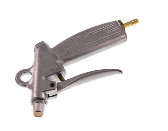 Aluminium blaaspistool met een 6 mm slangpilaar inlaatpoort. Het blaaspistool is uitgerust met een aluminium mondstuk met geluiddemper van gesinterd messing. Het mondstuk is met M12x1.25 schroefdraad in het pistool gedraaid. Voor een drukbereik van 1 tot 10 bar en temperaturen van -10 tot 50°C. De interne onderdelen zijn gemaakt van messing en roestvrij staal met een NBR afdichting.