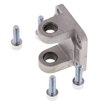 Deze stalen mannelijke gaffelmontage met kap kan worden gemonteerd op ISO 15552 & ISO 21287 cilinders met 32 mm diameter met behulp van de 4 bouten (meegeleverd) en een 10 mm pin voor de verbinding (apart verkrijgbaar). Kan rechtstreeks op de cilinder of als contrascharnier worden gemonteerd.