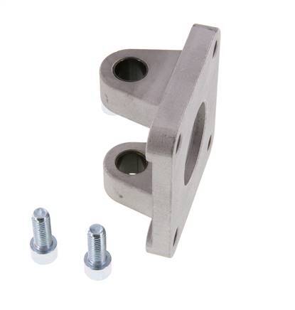 Deze stalen mannelijke gaffelmontage met kap kan worden gemonteerd op ISO 15552 & ISO 21287 cilinders met een diameter van 80 mm met behulp van de 4 bouten (meegeleverd) en een 16 mm pin voor de verbinding (apart verkrijgbaar). Kan rechtstreeks op de cilinder of als contrascharnier worden gemonteerd.