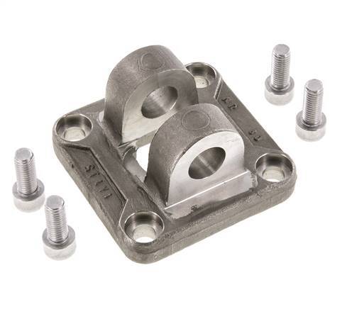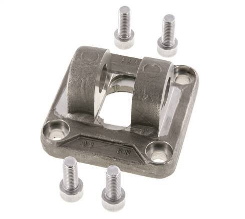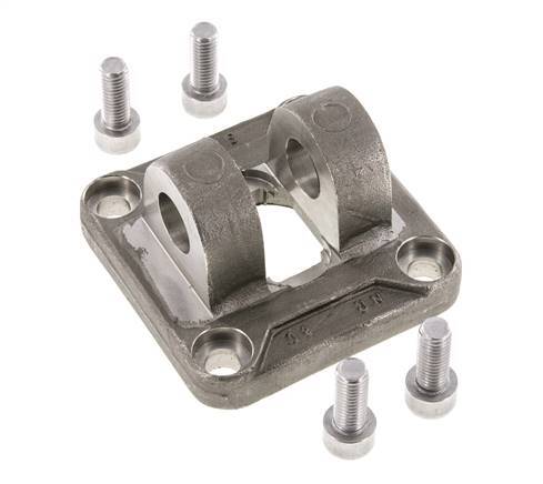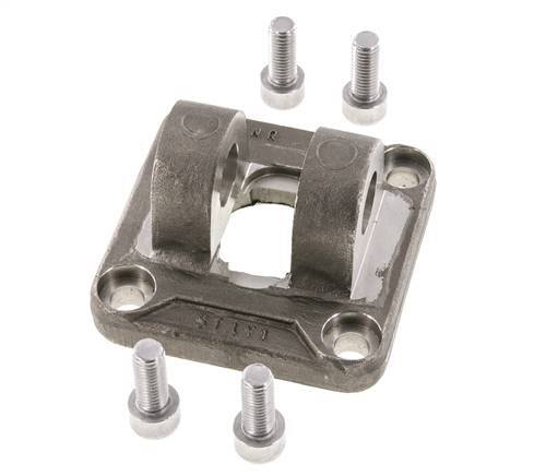 Deze stalen vrouwelijke gaffelmontage met kap kan worden gemonteerd op ISO 15552 & ISO 21287 cilinders met een diameter van 80 mm met behulp van de 4 bouten (meegeleverd). Gebruik een 20 pins voor de aansluiting (apart verkrijgbaar). Kan rechtstreeks op de cilinder of als contrascharnier worden gemonteerd.