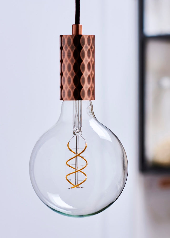 Premium LED filament globe lamp die de klassieke Spiraled esthetiek biedt tegen een toegankelijkere prijs. Beschikt over 300 lumen helderheid, gelijkwaardig aan een traditionele gloeilamp van 28W, met een warme 2200K lichtuitvoer. Compatibel met aanbevolen dimmers, waaronder Bailey Wonderwall. Energiezuinige bouwvorm met een stralingshoek van 320° en een heldere glazen afwerking.