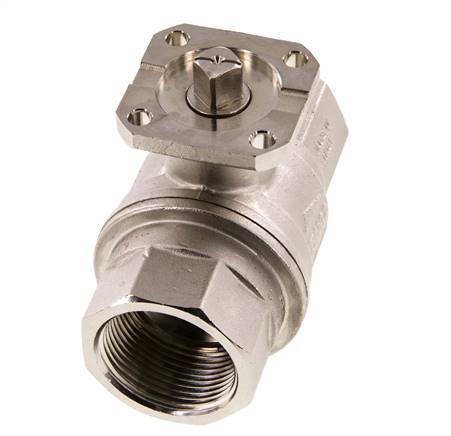 2-Weg kogelkraan met G1-1/4 inch schroefdraad (F/F) met ISO-Top (5211 F05), geschikt voor aandrijving met een elektrische of pneumatische actuator. Vernikkeld messing huis met hardverchroomde kogel en PTFE/FKM afdichtingen (siliconenvrij). 32 mm doorlaat en max werkdruk 40 bar. Voor o.a. water, olie, lucht, gas of vacuüm. Temperatuurbereik van -20 tot 160°C. Voldoet aan EN 331 en mag gebruikt worden voor aardgas of vloeibaar gas (max 5 bar and 60°C).