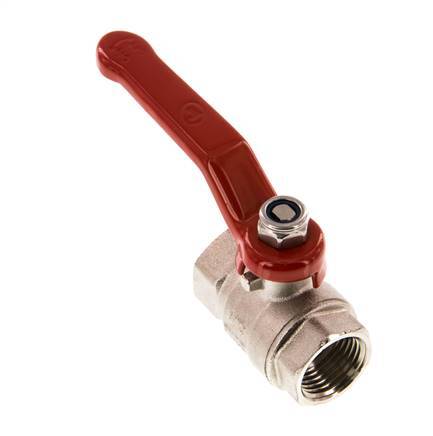 2-Weg kogelkraan met Rp1/2 inch schroefdraad (F/F) en hendel voor open/dicht regeling. 14 mm nominale diameter en maximale druk 25 bar. Voor bijvoorbeeld water, olie, lucht enz. Temperatuurbereik van -20 tot 95°C. Vernikkeld messing hardverchroomde kogel en PTFE/NBR afdichtingen.