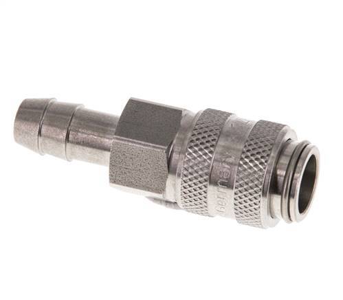 Monteer eenvoudig een slang over de 8 mm slangpilaar. Bestel optioneel een slangklem voor een juiste bevestiging van de slang. Deze koppeling is geschikt voor vacuümtoepassingen. Het werkdrukbereik is -0.95 tot 35 bar. De snelkoppeling is geschikt voor temperaturen tussen -15 tot 200 ° C. Het nominale debiet is 560 l / min. Het afdichtingsmateriaal is FPM/FKM. Het behuizingsmateriaal is roestvrij staal 303 (1.4305).