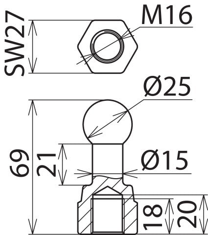 Dit artikel is een rechte vaste kogelpunt met binnendraad, ontworpen voor gebruik als aansluitpunt aan zowel fase- als aardzijde in overeenstemming met EN/IEC 61230 (DIN VDE 0683-100) op de geleider en het aardingssysteem. De maximale kortsluitstroom is 42 kA en de armatuurpuntdiameter is 25 mm. Het vertoont een hoge mechanische sterkte omdat de schroefdraad niet wordt ingesneden, waardoor het geschikt is voor het bevestigen van kabelschoenen of het aansluiten van stroomrails volgens DIN 43673-1. De maximale draaddoorsnede voor koper is 150mm². Deze armatuur heeft een recht ontwerp, met een inwendige schroefdraad.