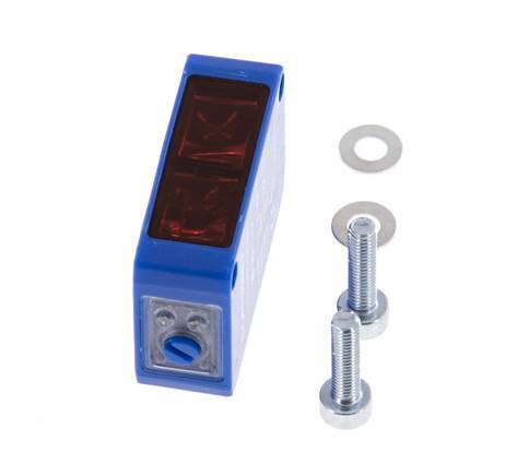 Bij de diffuus-reflecterende fotocel zijn zender en ontvanger in dezelfde behuizing geïntegreerd, zoals bij de retroreflecterende fotocel. In tegenstelling tot retroreflecterende foto-elektrische sensoren heeft deze geen reflector nodig. De lichtreflectie van een object wordt door de sensor geëvalueerd. Wanneer een voorwerp een lichtstraal reflecteert, wordt de uitgang van de sensor verbonden met de ontvanger. De scanafstanden zijn gespecificeerd voor een standaardobject met 90% her-emissie (wit papier).