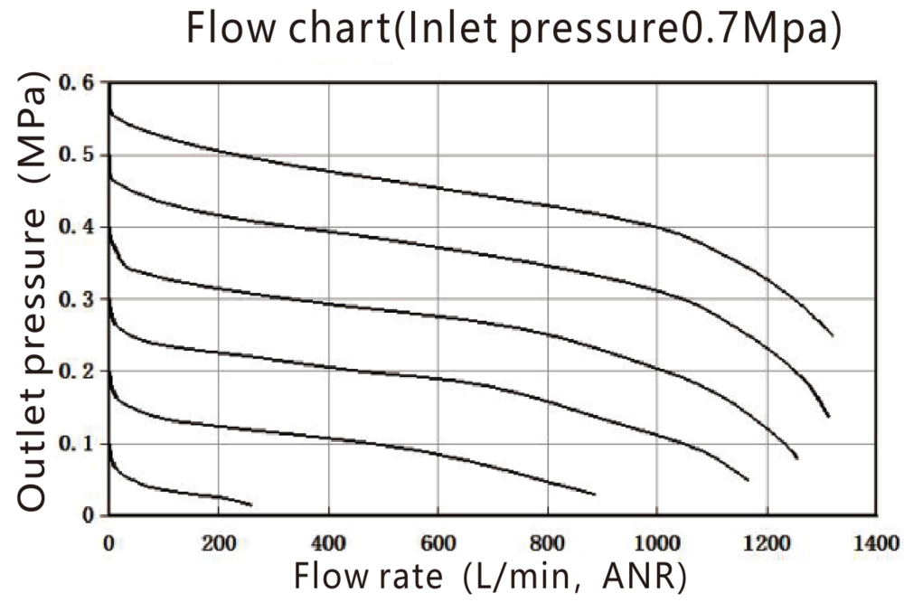 De maximale ingangsdruk bedraagt 10,0 bar (145 psi) en het temperatuurbereik ligt tussen -5 en 60 °C (23 en 140 °F). Er is een ingebouwde overdrukklep aan de uitlaatzijde wanneer de ingestelde druk wordt overschreden. De behuizing is gemaakt van aluminium. Het heeft een montagebeugel om het aan een muur of uw machine te bevestigen.