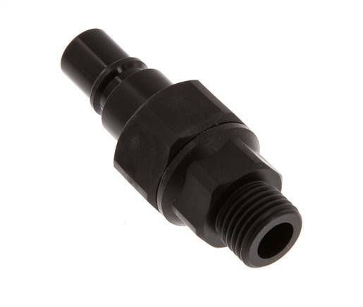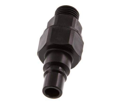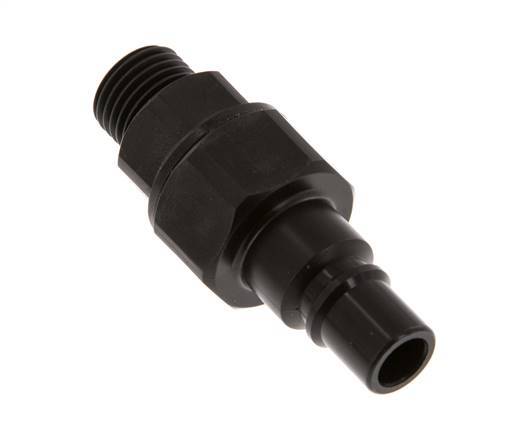 Polyoxymethyleen (POM) DN 7.2 koppeling stekker met G 1/4 inch buitendraad. Een pneumatische koppeling wordt gebruikt om luchtgereedschap snel aan te sluiten op een persluchtleiding.