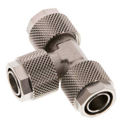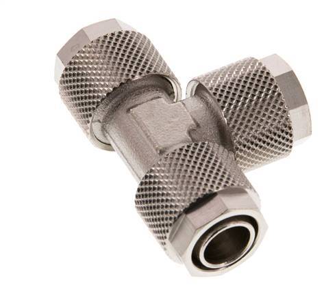 Deze vernikkelde messing T-Opsteekkoppeling is ontworpen met drie opsteekkoppelingen. Aansluiting 1 is een 12x10 mm opsteekverbinding. Aansluiting 2 is een 12x10 mm opsteekverbinding. Aansluiting 3 is een 12x10 mm opsteekverbinding. De bedrijfsdruk komt overeen met de gebruikte leidingen of slangen.
