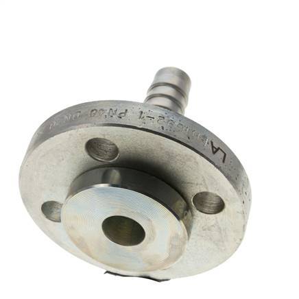 Deze flens van verzinkt staal is ontworpen met een slangpilaar en een flensaansluiting. Aansluiting 1 is een slangpilaar, ontworpen voor een slang met een inwendige/buitendiameter van 19x33 mm. Aansluiting 2 is een flensaansluiting met een grootte van DN 20 mm. De maximumdruk is 18 bar. De fitting is geschikt voor verzadigde stoom tot max. +210 °C, water tot +120 °C. De afmetingen van de plaatflens komen overeen met PN 10/16/25/40. Het is gemaakt in overeenstemming met de DIN EN 14423 / DIN 2826.