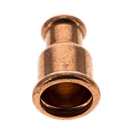 Dit is een verkleinende persfitting gemaakt van een koperlegering. De fitting heeft twee vrouwelijke perspoorten. Aansluiting 1 en 2 zijn ontworpen vo