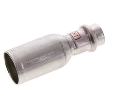 Dit is een reduceerfitting van roestvrij staal 1.4404. De fitting heeft een mannelijke perspoort (FTG) en een vrouwelijke perspoort. Aansluiting 1 is ontworpen voor een buis met een buitendiameter van 15 mm en aansluiting 2 heeft een mannelijke persaansluiting met een buitendiameter van 28 mm. De fitting heeft een FKM-afdichtingsring. De maximumdruk is 25 bar. De fitting is geschikt voor temperaturen van -20 tot 200 °C . Tijdelijk kan de maximumtemperatuur +280 °C zijn. De fittinglengte is 78 mm.