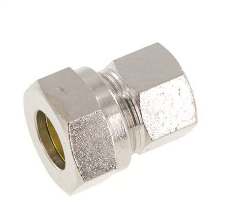 Deze vernikkelde messing rechte knelfitting is ontworpen met een aansluiting met binnendraad en een aansluitpoort met snijring. Aansluiting 1 is een s