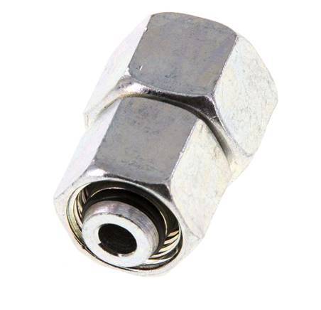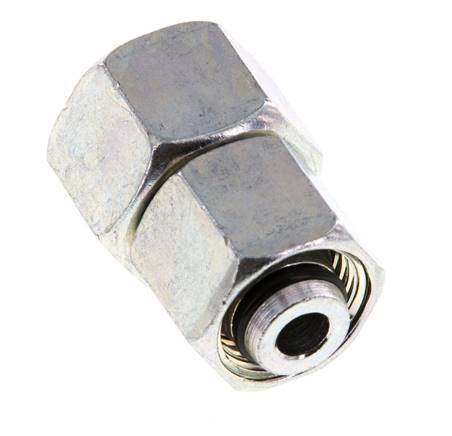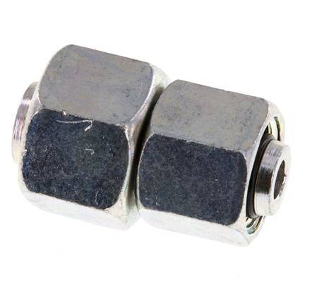 Deze verzinkte stalen rechte schroefverbinding is ontworpen met een draaibare buisverbindingspoort en een schroefdraadverbinding. Aansluiting 1 heeft een 10 mm draaibare buisverbinding. Aansluiting 2 heeft een 12 mm draaibare buisverbinding. Het heeft een o-ring en een conische afdichting. Het afdichtingsmateriaal is NBR. De maximumdruk is 315 bar. De fitting is geschikt voor temperaturen van -35 tot 100 °C (-31 tot 212 °F). Hij is vervaardigd overeenkomstig DIN EN ISO 8434-1 (DIN 2353).
