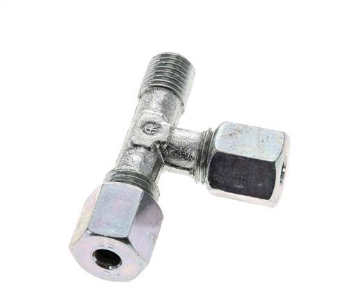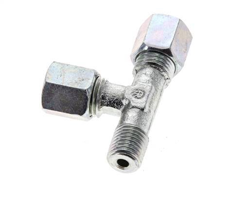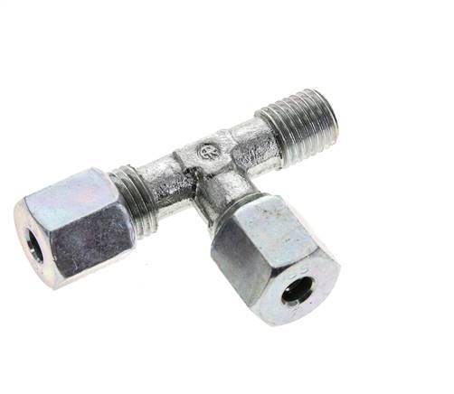 Deze verzinkte stalen T-stuk snijringkoppeling is ontworpen met een buitendraadverbinding en twee snijringverbindingspoorten in een L-vorm. Aansluitin