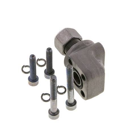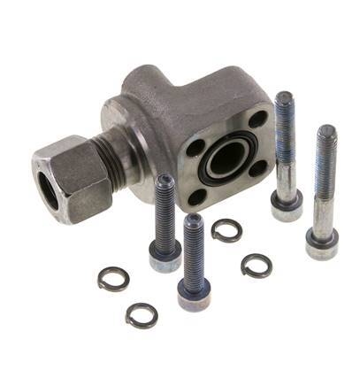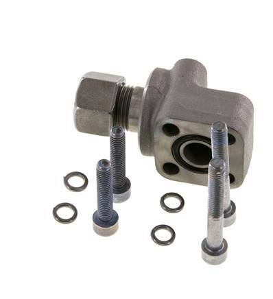 Dit is een L-Pompflens met een aansluitpoort voor een snijring. Het flensaansluitpunt is een LK 30 flensmaat (vierkant gatenpatroon). Aansluiting 2 is een 12 mm snijring met een M18x1,5 wartelmoer. De behuizing is gemaakt van verzinkt smeedbaar gietijzer met een NBR afdichting. De maximumdruk is 250 bar en de fitting is geschikt voor temperaturen van -30 tot 90 °C. De twee M6x30 bouten en twee M6x45 bouten zijn inbegrepen.