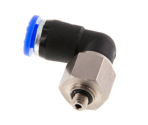 Dit is een L-stuk draaidoorvoer met een insteekaansluiting en een schroefdraadverbinding om een slang op aan te sluiten. Aansluiting 1 is een 6 mm insteekaansluiting. Aansluiting 2 heeft M 5 buitendraad. De buitendraad verbinding heeft een O-ring afdichting.De behuizing is gemaakt van vernikkeld messing/pbt. De afdichting is van NBR. Het drukbereik is -0.95 to 10 bar, en de koppeling is geschikt voor vacuüm. De fitting is geschikt voor temperaturen van 0 tot 60°C. Deze koppeling is ontworpen voor een maximum van 500 omwentelingen per minuut. Installeer een slang eenvoudig door deze in de ontkoppelingsring van de fitting te duwen, totdat deze niet meer verder kan. De klemringen zullen automatisch rond de slang klemmen voor een directe en veilige verbinding. De koppeling kan eenvoudig weer worden verwijderd. Druk de ontkoppelingsring naar binnen in de richting van de fitting om de klemringen los te maken waarna het mogelijk is de slang te verwijderen.