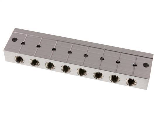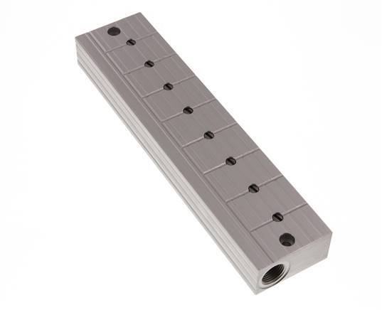 Verdeelstang met kogelkranen 2xG3/8'' - 8xG1/4'' RVS PN 10