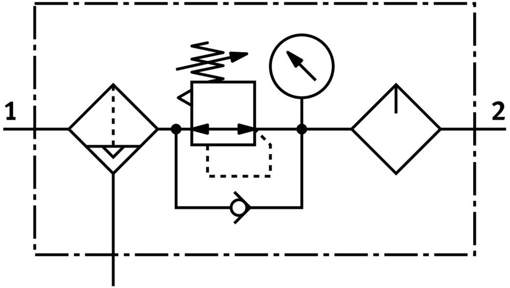 Deze combinatie van luchtverzorgingseenheid biedt efficiënte behandeling van perslucht voor industriële toepassingen. Met een G1/2 pneumatische aansluiting en een standaard nominale debiet van 3700 l/min, levert het robuuste prestaties. De eenheid heeft een drukregelbereik van 0.5 - 12 bar en een filtratiegraad van 40 µm, wat zorgt voor een schone en goed geperste luchttoevoer. Het compacte ontwerp van 62 mm breed integreert een filterregelaar met manometer en proportionele standaard olie-nevelsmering, waardoor het geschikt is voor verschillende pneumatische systemen die betrouwbare luchtverzorging vereisen.