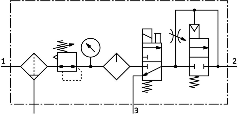Deze luchtverzorgingsunit combineert essentiële pneumatische componenten in een compact pakket. Het heeft een G1/4 pneumatische aansluiting en levert een standaard nominale debiet van 650 l/min. De unit biedt drukregulatie van 2,5 tot 12 bar, met een filtratiegraad van 40 µm. Ontworpen voor efficiënte luchtbehandeling, integreert het een afsluitventiel, filterregelaar met manometer en smeermiddel. Het veiligheidsinschakelventiel zorgt voor gecontroleerde systeemdruk, wat de operationele veiligheid en bescherming van de apparatuur verbetert.
