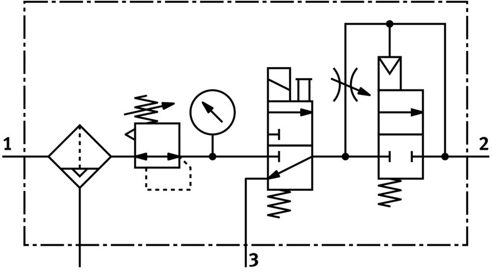 Deze luchtverzorgingsunit combineert essentiële componenten voor pneumatische systemen, waaronder een afsluitklep, filterregelaar met manometer, proportionele standaard olie-nevelsmeermiddel en veiligheidsinschakelventiel. Met een G3/8 pneumatische aansluiting en een standaard nominale debiet van 1890 l/min, biedt het efficiënte luchtbeheer. De unit heeft een drukregelingsbereik van 2.5 - 12 bar en een filtratiegraad van 40 µm, wat zorgt voor betrouwbare prestaties en bescherming van downstream apparatuur in industriële pneumatische toepassingen.