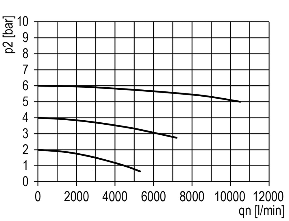 Het filter verwijdert water, vuil en andere schadelijke deeltjes groter dan 40 micron. Het filter verwijdert water, vuil en andere delen die schadelijk zijn voor uw luchtsysteem. Dit model heeft G 1 inch poorten. Het maximale debiet bedraagt 10500 l/min. Houd er rekening mee dat het maximale debiet alleen niet voldoende informatie geeft voor een juiste dimensionering. Gebruik de debietcurve om te bepalen of de drukval binnen uw verwachte debietbereik aanvaardbaar is. De debietcurve toont het debiet voor een ingestelde ingangsdruk met meerdere uitgangsdrukken. Voor elke uitgangsdruk is te zien hoe de druk verandert naarmate het debiet toeneemt. Aanbevolen wordt het apparaat te gebruiken in het vlakke bereik van de curve, en niet aan het begin of het einde van de curve.