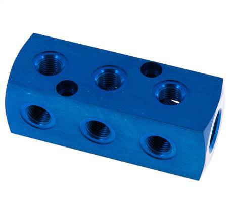 1xG 1/2'' x 9xG 1/4'' Aluminium Verdeelblok Eenzijdig 16 Bar