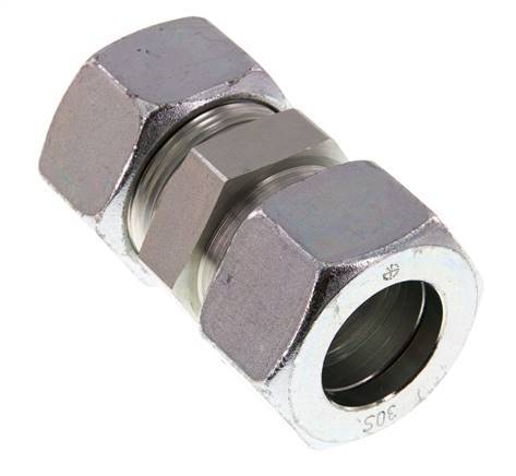 Deze koppeling is ontworpen met twee snijringkoppelingen. Verbinding 1 is een 30 mm snijringkoppeling. Verbinding 2 is een 30 mm snijringkoppeling. Het is een rechte koppeling. Het is gemaakt van stalen en is galvanisch / elektrolytisch verzinkt voor oppervlaktebescherming. Het is geschikt voor media met een temperatuurbereik van -40 °C tot 120 °C (-40 °F tot 248 °F). Bij 20 °C (68 °F), kan het een maximale druk van 400 bar (5802 psi) aan. Volgens de DIN 2353 is deze koppeling geschikt voor een S (zwaar) belastingsklasse. Het is gemaakt volgens de DIN EN ISO 8434-1 (DIN 2353).