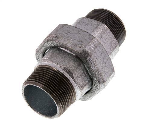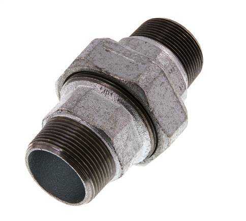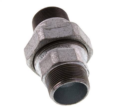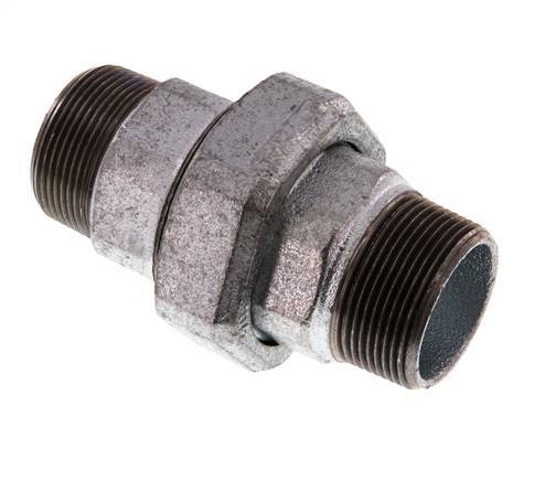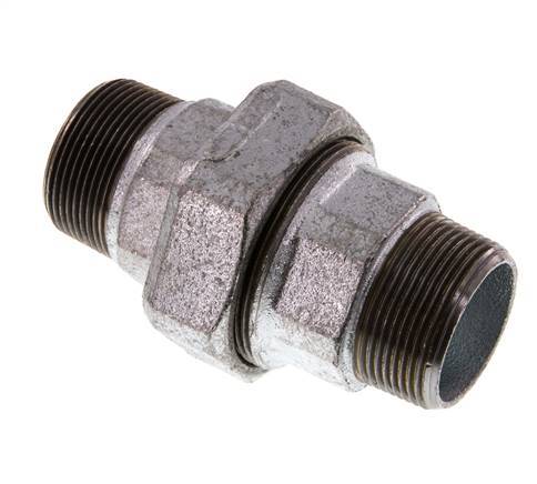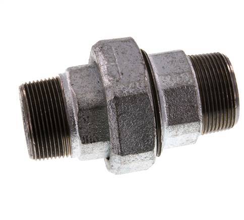 Deze koppeling is ontworpen met aan beide zijden buitendraad. Verbinding 1 heeft R 1 1/2 inch schroefdraad. Verbinding 2 heeft R 1 1/2 inch schroefdraad. Het is een rechte koppeling. Het is gemaakt van gietijzeren (smeedbaar) en is galvanisch / elektrolytisch verzinkt voor oppervlaktebescherming. Bij 20 °C (68 °F), kan het een maximale druk van 25 bar (363 psi) aan. Ze hebben een 3-delig ontwerp.