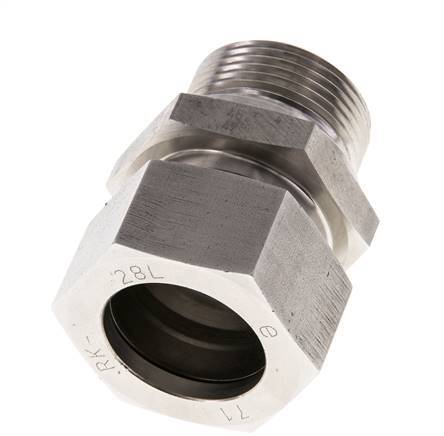 Deze rvs rechte opschroefkoppeling is ontworpen met een buitendraad in combinatie met een snijringkoppeling. Verbinding 2 is een 28 mm snijringkoppeling. Geschikt voor temperaturen van -60 °C tot 400 °C (-76 °F tot 752 °F). Max druk van 160 bar (2321 psi). Geschikt voor een L (licht) belastingsklasse.Ontworpen volgens de DIN EN ISO 8434-1 (DIN 2353).