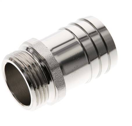Deze messing slangpilaar is ontworpen met een pilaar en buitendraad. Verbinding 1 heeft een mannelijke G 1 inch schroefdraad. Verbinding 2 is een slangpilaar, ontworpen voor een slang met een binnendiameter van 32 mm. Max druk van 16 bar (232 psi).