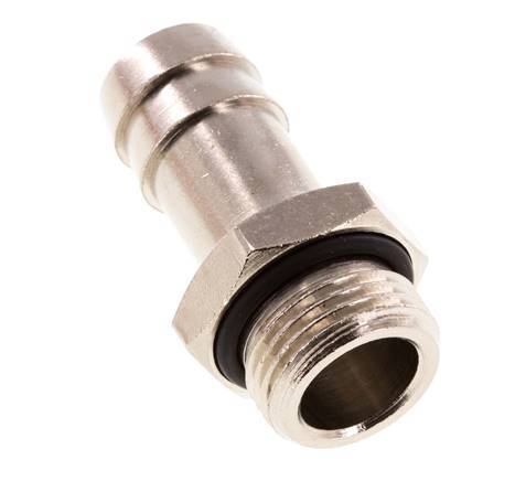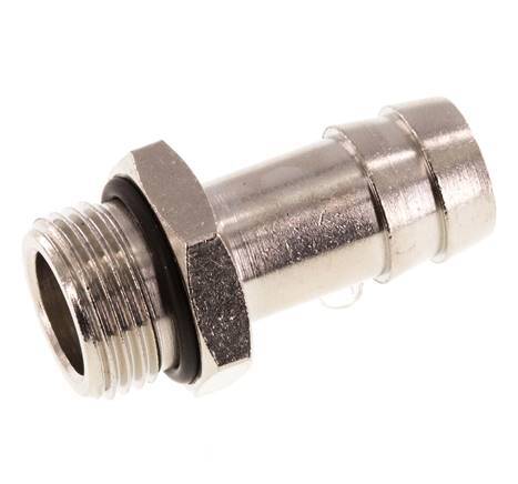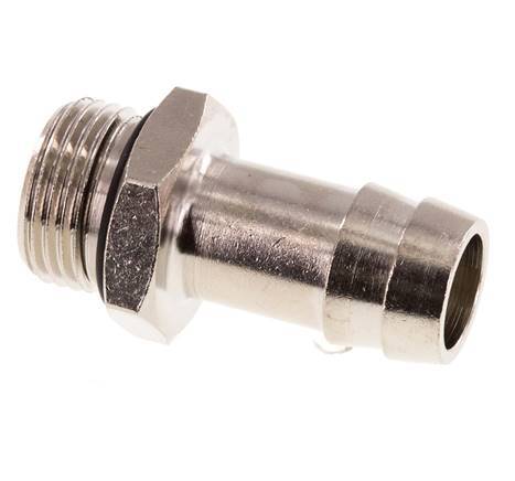 Deze messing slangschroefverbinding is ontworpen met een mondstuk en een buitendraad met een afdichting. Aansluiting 1 heeft G 3/8 inch buitendraad. Aansluiting 2 is een slangpilaar, ontworpen voor een slang met een binnendiameter van 13 mm. De afdichting is NBR. Maximum druk van 30 bar.