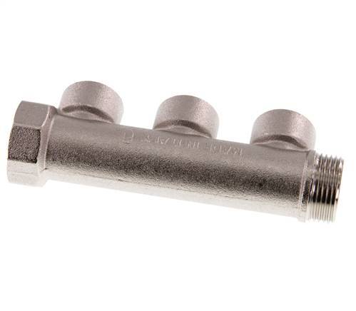 G 3/4'' x 3xG 1/2'' F/M/F Vernikkeld Messing Verdeelstang 10 Bar