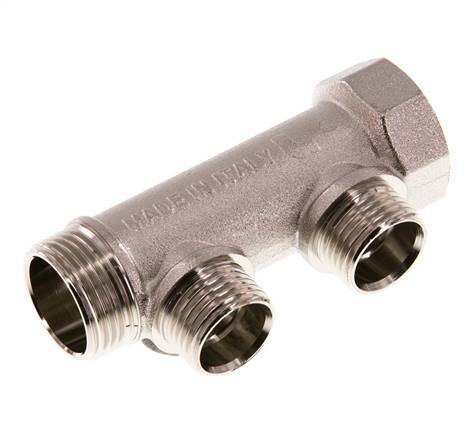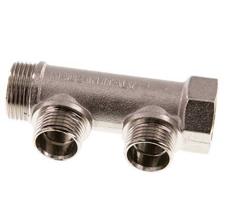 G 3/4'' x 2xG 1/2'' F/M/M Vernikkeld Messing Verdeelstang 10 Bar