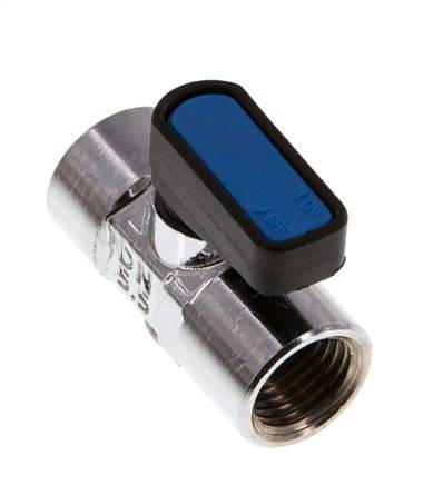 Mini messing kogelkraan met ontluchting. De klep heeft G 1/4 inch schroefdraadpoorten en een ontluchtingspoort van 2,5 mm. De klepdoorlaat is 5,5 mm en de maximale druk is 20 bar. De klep is geschikt voor lucht, water en vacuüm (max. -0,99 bar). Temperatuurbereik is van -20 tot 80 °C. Verchroomd messing behuizing, hardverchroomde messing kogel en PTFE/NBR afdichtingen.