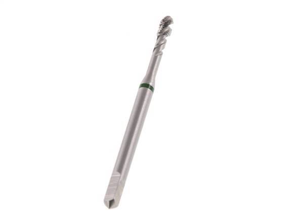 Dit is een machinale draadtap voor M3 metrische blinde draadgaten. Het heeft een as van 3.5 mm en een draadsnijder van 6 mm lang.