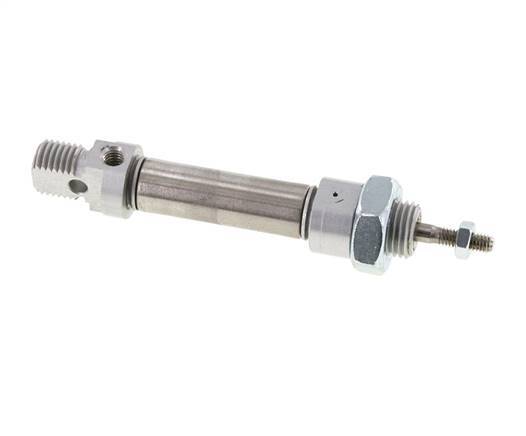 Dit is een enkelwerkende ISO 6432 mini pneumatische cilinder met een boring van Ø10 mm en een slag van 10 mm. De werkdruk bedraagt 1 tot 10 bar (14,5 tot 145,04 psi). De cilinder is zelfsmerend en heeft een magnetische zuiger voor positiebepaling. De einddraad is M4. Breed aanbod aan montagetoebehoren beschikbaar. De cilinderkop en -voet zijn van aluminium, de cilinderbuis is van 304 roestvrij staal en de zuigerstang is van 303 roestvrij staal. Geschikt voor temperaturen van -20 tot 80 °C.