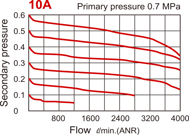 Deze filter-regelaar (FR) combineert twee functies. Het filter verwijdert water, vuil en andere schadelijke deeltjes groter dan 40 μm voor uw luchtsysteem. De drukregelaar past de druk continu aan tot een stabiel niveau, zelfs wanneer de ingangsdruk varieert. Het niveau kan worden ingesteld tussen 0,1 en 8,5 bar. Dit model heeft G 3/8" poorten. Het maximale debiet bedraagt 4000 l/min. Houd er rekening mee dat het maximale debiet alleen niet voldoende informatie geeft om uw filterregelaar goed te dimensioneren. Gebruik de debietcurve om te bepalen of de drukval binnen uw verwachte debietbereik aanvaardbaar is. De debietcurve toont het debiet voor een ingestelde ingangsdruk met meerdere uitgangsdrukken. Voor elke uitgangsdruk is te zien hoe de druk verandert naarmate het debiet toeneemt. Aanbevolen wordt het apparaat te gebruiken in het vlakke bereik van de curve, en niet aan het begin of het einde van de curve. Merk op dat de drukregelaar de uitgangsdruk regelt, niet het debiet. De uitgangsdruk kan worden aangepast door het handwiel omhoog te trekken en te draaien. De uitgangsdruk kan na afstelling worden vergrendeld door het handwiel weer in te drukken. De maximale ingangsdruk is 15 bar en het temperatuurbereik ligt tussen -5 en 60 °C. Het filter is berekend op 40 micron, wat betekent dat het geen verontreinigingen groter dan dit doorlaat. Voor het legen heeft hij een automatische condensaataftap met een afvoercapaciteit van 70 cm3. Het materiaal van de behuizing is van aluminium en het filter heeft een container van polycarbonaat (PC). Het heeft een positie-indicator om het niveau van de container te zien. Het heeft een montagebeugel om het aan een muur of uw machine te bevestigen.