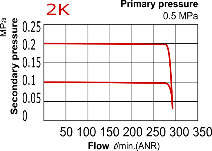 De drukregelaar past de druk continu aan tot een stabiel niveau, zelfs wanneer de ingangsdruk varieert. Het niveau kan worden ingesteld tussen 0,05 - 2 bar. Dit model heeft G 1/8" poorten. Het maximale debiet bedraagt 290 l/min. Houd er rekening mee dat het maximale debiet alleen niet voldoende informatie geeft om uw drukregelaar goed te dimensioneren. Gebruik de debietcurve om te bepalen of de drukval binnen uw verwachte debietbereik aanvaardbaar is. De debietcurve toont het debiet voor een ingestelde ingangsdruk met meerdere uitgangsdrukken. Voor elke uitgangsdruk is te zien hoe de druk verandert naarmate het debiet toeneemt. Aanbevolen wordt het apparaat te gebruiken in het vlakke bereik van de curve, en niet aan het begin of het einde van de curve. De uitgangsdruk kan worden aangepast door het handwiel omhoog te trekken en te draaien. De uitgangsdruk kan na afstelling worden vergrendeld door het handwiel weer in te drukken. De maximale ingangsdruk is 10 bar en het temperatuurbereik ligt tussen -5 en 60 °C. Het heeft een ingebouwd overdrukventiel. De behuizing is gemaakt van aluminium. Het heeft een montagebeugel om het aan een muur of uw machine te bevestigen.