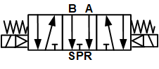 Een 5/3-weg ventiel heeft 5 poorten en 3 standen. De centrale (rust-)stand kan verschillende functies hebben, bij een center closed ventiel zijn alle poorten afgesloten in de centrale stand. De twee overige standen worden elk bediend door een een eigen spoel. Bij deze standen wordt poort A gevoed en poort B ontlucht of andersom. Als geen van beide spoelen bediend wordt, keert het ventiel terug naar de centrale ruststand (mono-stabiel). Dit ventiel kan bijvoorbeeld gebruikt worden om een dubbelwerkende cilinder aan te sturen, met de mogelijkheid om de cilinder te blokkeren in tussenstanden. Door een van de twee spoelen te bedienen, kan het magneetventiel de cilinder in een richting vullen. In onderstaande figuur is de schematische circuit functie afgebeeld.