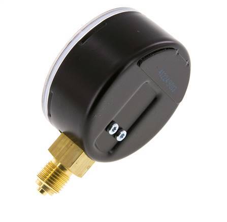 manometer MW04063SV heeft een aansluitpunt onder de meter en meet de druk in het bereik van 0 tot 40 bar (0..580 psi). De schaalverdeling is 0 - 2 en de meetnauwkeurigheidsklasse 1,6 (± 1,6 %). De stalen behuizing heeft een diameter van 63 mm. Het meetsysteem, de indicator en de G 1/4 inch aansluiting zijn gemaakt van messing.