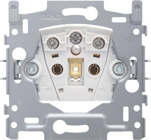 Stekkercontactdoos met penaarde (België), klauwbevestiging en kinderbeveiliging. Dit stopcontact heeft een inbouwdiepte van 28,5 mm. Een afwerkingsset en afdekplaat in een kleur naar keuze moeten apart worden besteld.