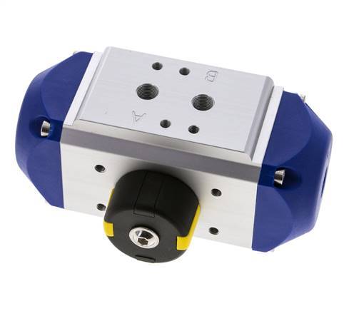 Met deze pneumatische actuator kunt u kwartslag (kogel of vlinder) kleppen bedienen met perslucht die een koppel van 4,5 Nm bij 6 bar genereert, maar hij heeft een stuurdrukvenster van 6-10 bar om het koppel te verhogen/verlagen. Compatibel met ISO 5211 F04 kleppen. Hij is veer open en heeft een betrouwbaar tandheugel systeem. Het omgevingstemperatuurbereik is -20°C tot 80°C en het heeft een ATEX-certificaat (EX II 2GD c). De actuator heeft G 1/8 inch luchtpoorten en een 1/4 inch Namur-interface om rechtstreeks een magneetventiel te monteren.
