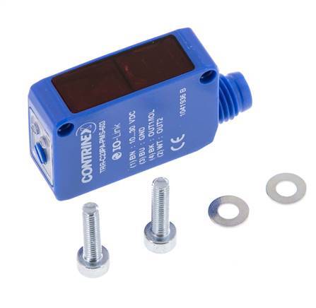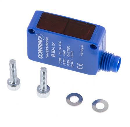 Deze retroreflecterende fotocel heeft zender en ontvanger geïntegreerd in één behuizing. Het is geschikt om te werken voor transparante objecten. Het detectiebereik loopt van 10 tot 5000 mm en de maximale schakelafstand bedraagt 4200 mm. Het heeft een M8 connector met 4 pinnen. Omschakelmodus: PIN 4 - licht schakelen / IO link, PIN 2 - donker schakelen. De bedrijfsspanning 10 - 30 V DC en de regeluitgang 100mA (PNP). De sensor is geschikt voor IO-Link.