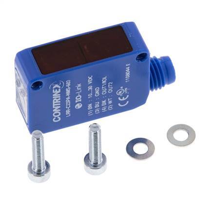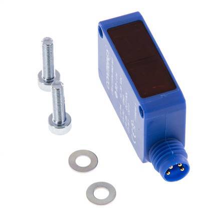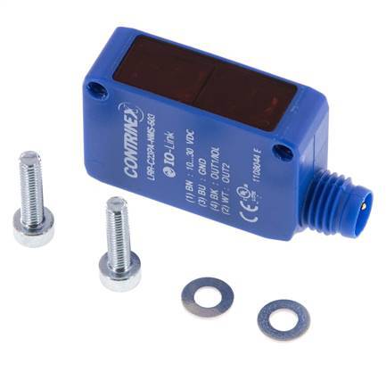 Deze retroreflecterende fotocel heeft zender en ontvanger geïntegreerd in één behuizing. Het detectiebereik loopt van 20 tot 8000 mm en de maximale schakelafstand bedraagt 6000 mm. Het heeft een M8 connector met 4 pinnen. Omschakelmodus: PIN 4 - licht schakelen / IO link, PIN 2 - donker schakelen. De bedrijfsspanning 10 - 30 V DC en de regeluitgang 100mA (PNP). De sensor is geschikt voor IO-Link.