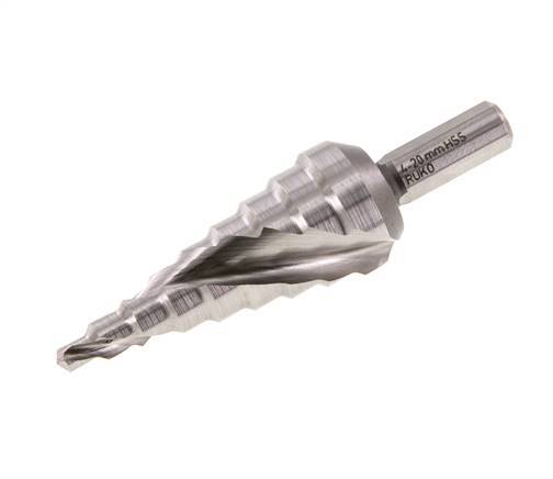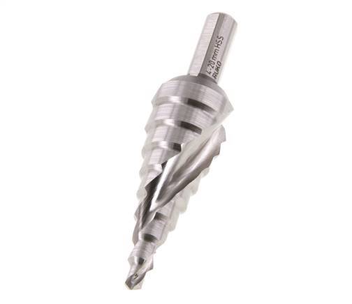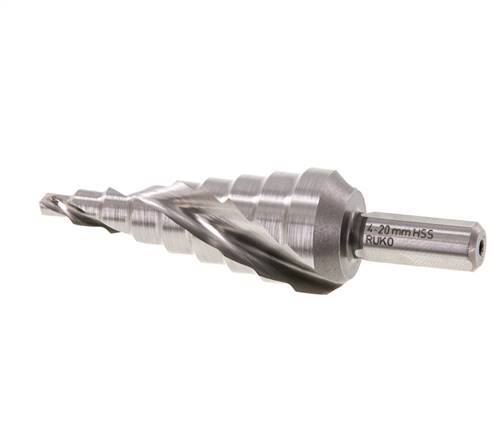 Dit is een hoge kwaliteit maat RUKO HSS trappenboor voor diameters: 4 - 6 - 8 - 10 - 12 - 14 - 16 - 18 and 20 mm.