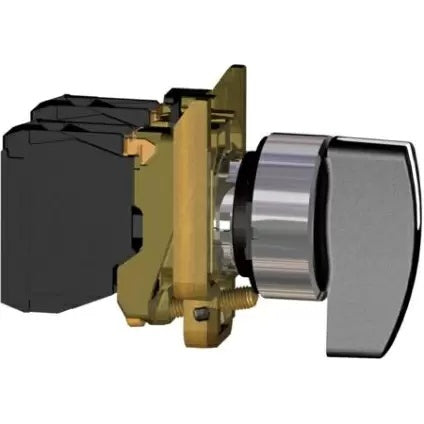 Schneider Electric Harmony XB4 keuzeschakelaar, bedieningselement design lange draaigreep, knop zwart, schakelfunctie vergrendeling, beschermingsgraad (IP) IP67/IP69K, gatdiameter 22,5mm, 1 maakcontact, 2 schakelposities, elektrische aansluiting versie schroefklem.