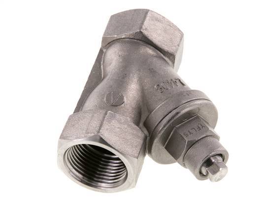 RVS Y-filter met G 3/4" binnendraad en een RVS filter met een maaswijdte van 0,8 mm. Voor media tot 40 bar (580 psi) bij temperaturen tussen -20 °C en 200 °C (-4 tot 392 °F). Te gebruiken in één stroomrichting (zie pijl op behuizing). Het vuil verzamelt zich in het filter en kan worden gereinigd door de afdichtingskap los te draaien.